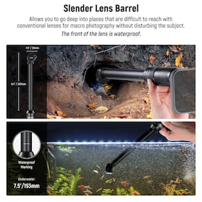 - ?Para gravação de vídeo móvel? Projetada para gravar vídeos incríveis no seu celular, esta lente macro sonda com um cilindro fino de 340 mm e distância focal de 18 mm pode ir para áreas profundas e estreitas, como cavernas e canos de animais, mantendo uma distância segura do objeto. Observação: use-o com uma gaiola de telefone mais recente ou capa com rosca de 17 mm. Compatível com iPhone Samsung; compatível com SANDMARC