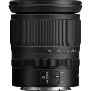 A Nikon Z 24-70mm f/4 S é uma lente versátil que abrange desde perspectivas de grande angular até comprimento retrato, sua abertura máxima constante f/4 mantém toda a faixa de zoom.