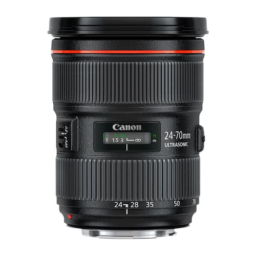 A lente EF 24-70mm F / 2.8L II USM da Canon foi projetada para apresentar uma abertura máxima de F/2.8 constante, oferecendo iluminação consistente em toda a faixa de zoom e também maior controle sobre a profundidade de campo para trabalhar com técnicas de foco seletivo. Conta com motor AF ultrassônico tipo anel com foco manual em tempo integral, design ótico sofisticado, que inclui um elemento Super UD e dois elementos UD, que reduzem a margem de cores e as aberrações cromáticas para obter um alto grau de precisão e clareza de cores. Sem falar que como um membro da estimada série L da Canon, esta lente é vedada contra poeira e umidade para trabalhar em condições ambientais adversas.