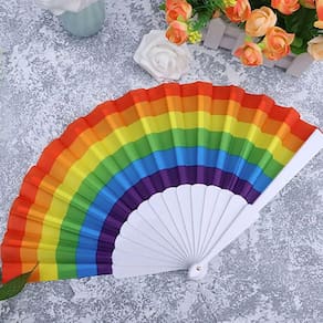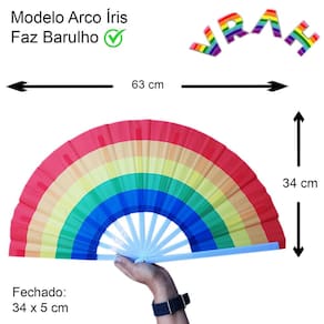 Leque Grande Colorido Arco Íris LGBT Vraah Dança Festa Carnaval Decoração - Faz Barulho. Modelo colorido Arco-íris, ideal para festas, eventos e decoração. Tamanho Grande: Aberto = 63 cm de comprimento x 34 cm de altura. Fechado = 34 cm de comprimento x 5 cm de altura. Modelo que faz barulho ao abrir e não passa despercebido na sua balada ou evento. Moderno é super tendência. Possui 11 varetas plásticas e tecido colorido em poliéster. Atenção: Produto de alto giro. Recebemos novas remessas semanalmente e algum detalhe pode variar conforme o lote recebido, porém o produto é o mesmo e mantém as mesmas características e qualidade. Contém: 1 unidade. Fotos ilustrativas e reais do produto.