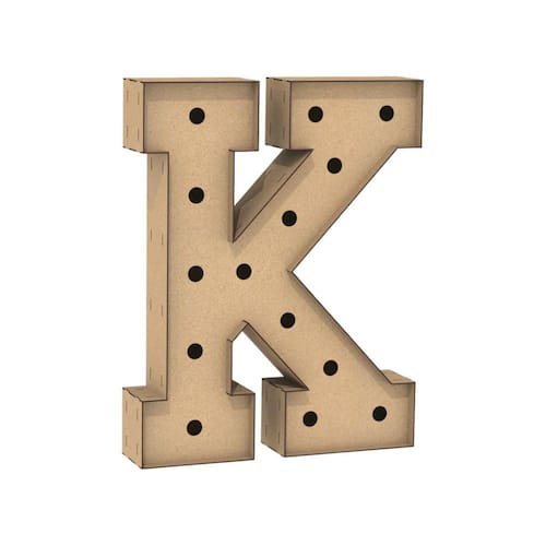 Letra Caixa Grande K Mdf 100Cm Altura Furo Lampad Iluminação