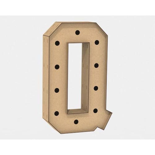 Letra Caixa Grande Q Mdf 80Cm Altura Furo Lampada Iluminação