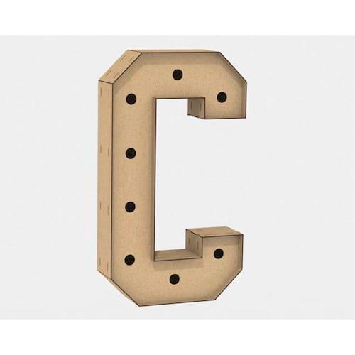 Letra Caixa Grande C Mdf 80Cm Altura Furo Lampada Iluminação