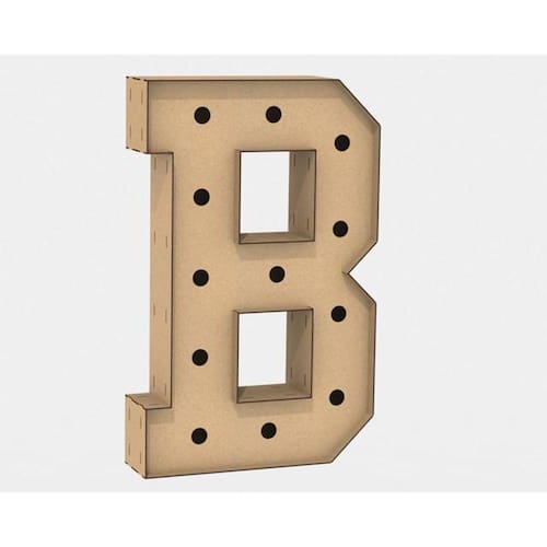 Letra Caixa Grande B Mdf 80Cm Altura Furo Lampada Iluminação