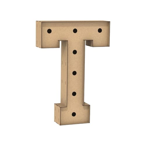Letra Caixa Grande T Mdf 100Cm Altura Furo Lampad Iluminação