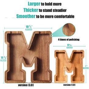 Tem problemas para pegar um presente para seus filhos ou netos? Aqui está ela! Nosso cofrinho grande e extra grande em forma de carta, feito de madeira 100% orgânica. É o presente perfeito para bebês/crianças/ou qualquer pessoa com seus nomes em inglês! O vidro acrílico na parte superior permite ver através da caixa de moedas e avaliar o progresso da economia de dinheiro. Há um compartimento para moedas na parte superior, onde as moedas devem ser jogadas. E o compartimento é amplo o suficiente para qualquer moeda e notas. Você também pode ter seu nome completo gravado a laser no acrílico, o que o tornará único para você ou para a pessoa que você ama. Como tirar o dinheiro? Você pode abrir a caixa de dinheiro desparafusando vários parafusos pequenos e remover o vidro acrílico. - Brinquedo educativo e divertido – as crianças vão adorar o cofrinho com seu próprio nome inicial e painel de cofrinho transparente vai intrigá-las para observar o crescimento da economia. Ideia de presente perfeita para recém-nascidos, meninos, meninas. - 👍 Design exclusivo – Este é um banco de dinheiro em forma de letra grande, feito de madeira 100% orgânica. A tampa de vidro acrílico transparente permite ver através da moeda dentro e avaliar o progresso da economia de dinheiro. - 👍 Mais seguro e confortável – Fizemos maior e mais espesso ficar estável e polido 4 vezes para torná-lo mais confortável. Pode ser utilizado como decoração para loja ou presente de casamento também. - 👍 PODE SER PERSONALIZADO – Temos letras maiúsculas de A-Z mais "$" "&" "?" forma para você personalizar qualquer combinação que você gosta. Também fornecemos serviço de gravação a laser com nome completo na capa frontal e serviço de gravação de texto na parte de trás com custo extra. Verifique o link em nossa loja. - 👍 Qualidade premium e serviço pós-venda – Temos orgulho da qualidade e originalidade dos nossos cofrinhos de madeira para adultos e crianças, e é por isso que eles vêm com uma garantia de satisfação para garantir sua felicidade total.