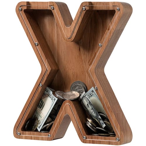 ladenk Cofrinho grande de madeira infantil com letras - cofrinho para meninos e meninas - cofrinho do alfabeto com letra X - cofre de moedas para aniversário - ?Qualidade premium e artesanato?Nosso banco é feito de nogueira ou carvalho 100% orgânico de alta qualidade com acabamento de óleo natural não tóxico, tornando-o suave e elegante. O tamanho deste banco de cartas é de 23 cm de altura, tem espaço suficiente para muitas economias para o seu filho. - ?Brinquedos educativos Montessori?O acrílico transparente ajuda as crianças a observar seu progresso de salvamento, atrai sua atenção. Este cofrinho para meninos e meninas as ajuda a desenvolver o hábito de economizar e um senso de responsabilidade desde cedo. - ?DESIGN GRANDE E ÚNICO?Vendemos caixas de cartas há 3 anos, o design exclusivo e a aparência requintada são amados por consumidores e crianças, seja na estante infantil ou na gaveta ou na sala de estar é uma bela decoração, quando você quiser tirar o dinheiro, você pode remover facilmente desparafusando alguns parafusos, por esse motivo pode ser utilizado por muitos anos. - ?Presentes perfeitos e significativos?Escolha o banco que corresponde às iniciais do seu filho, um presente perfeito para recém-nascidos, meninos e meninas de qualquer idade, para chá de bebê, dia das crianças, volta às aulas, ação de graças, natal, aniversários etc - ?SERVIÇO PERSONALIZADO DA LADENK?Se você tiver alguma dúvida sobre o banco, ou precisar que personalizemos o seu banco, , fornecemos serviço de nome completo de gravação a laser com um custo extra, podemos gravar o conteúdo que você deseja na frente e no verso, isso beneficiará seu filho por toda a vida.