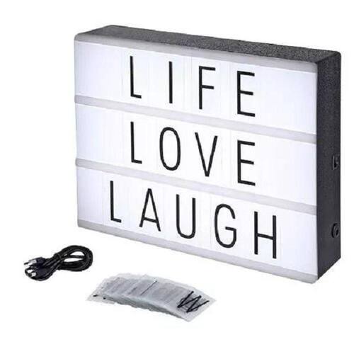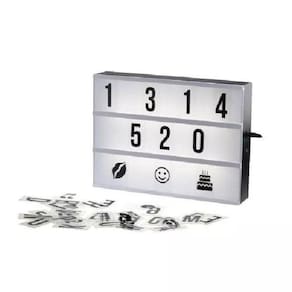 Luminária Led Light box Cinema A4 + 96 Letras e Números Itens inclusos: - Luminária Light Box, - 96 slides letras, números e símbolos , - Cabo USB. Tamanho: - 30 cm x 22 cm x 4 cm, - A4 Energia: - Cabo Usb Incluso ou Pilha AA Não inclusa