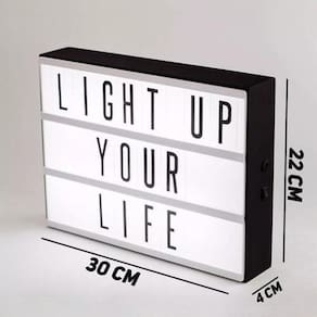 Coloque suas mensagens pessoais no centro das atenções com esta caixa de luz. São três painéis para inserir letras, ícones ou símbolos, permitindo que você coloque a frase que você quiser ou exiba seus ícones favoritos.