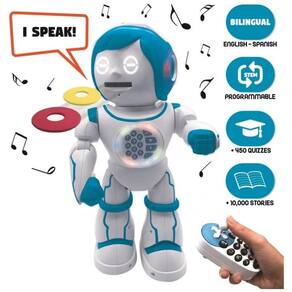 Apresentamos o LEXiBOOK Powerman Kid, um emocionante robô bilingue que fala inglês e espanhol, ideal para crianças! Interativo e expressivo, ele dança, conta piadas, toca música e muito mais! Com mais de 450 quizzes educativos sobre gramática, números, animais e locais, este robô estimula a aprendizagem de forma divertida. Com o Story Maker, as crianças podem criar até 10.000 histórias engraçadas e loucas, e ainda desfrutar de 8 fábulas de Esopo como histórias para dormir. Programável, o Powerman Kid ajuda as crianças a descobrirem a lógica da programação, permitindo adicionar música e salvar coreografias. Com várias faixas musicais, ele dança pela sala como nenhum outro robô. Possui função karaokê, repetindo e memorizando o que é dito, além de cantar em modo karaokê. E mais, ele dispara discos de espuma coloridos de forma segura. Controle-o com o joystick, movendo-se para frente, para trás, para a direita e para a esquerda, garantindo diversão em todas as direções!