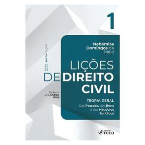Sobre a obra Lições de Direito Civil - Volume 1 - 6ª Ed - 2025 Teoria Geral - Das Pessoas, dos Bens e dos Negócio Jurídicos Esta obra aborda todos os conceitos indispensáveis ao conhecimento básico do direito civil brasileiro. A obra não tem a pretensão de ser um tratado doutrinário, mas como o próprio nome da coleção diz, ser lições de direito civil. Cada volume apresentado estabelece premissas fundamentais para a melhor compreensão da matéria ao analisar acertadamente os institutos que tratam do conteúdo da disciplina. Destacam-se na coleção alguns traços distintivos com relação a outras obras similares disponíveis no mercado, como, por exemplo, a falta de citação de outros autores. Quer dizer, a obra é direta e objetiva e o autor não se preocupou em ficar colacionando notas de doutrina de outros autores para reforçar seus conceitos. Outro exemplo: nas citações de artigos de Lei, especialmente do Código Civil , o leitor encontrará em notas de rodapé o texto do artigo mencionado. Dessa forma, o aluno não necessitará ter ao lado o vade mecum e ficar folheando-o em busca dos artigos mencionados. Quer dizer, seus conceitos são diretos, objetivos e claros, sem repetições. Lições de Direito Civil vai contribuir para a formação de futuros operadores do direito, bem como pode ser útil àqueles que vão prestar o Exame da Ordem dos Advogados do Brasil e aos candidatos que vão prestar concursos para juízes, promotores, defensores e outros cargos destinados a advogados. A coleção completa é composta dos seguintes volumes: Vol. 1 • Teoria Geral – das pessoas e dos bens – Prefácio Dra. Andrea Wild Vol. 2 • Obrigações e Responsabilidade Civil – Prefácio Dr. Paulo Hamilton Siqueira Jr Vol. 3 • Dos Contratos e dos Atos Unilaterais – Prefácio Dra. Roberta Densa Vol. 4 • Direitos das Coisas – Prefácio Dr. Carlos Alberto Garbi Vol. 5 • Família e Sucessões – Prefácio Dra. Adriana Galvão Moura Abílio Autor Nehemias Domingos de Melo APLICAÇÃO O livro destina-se especialmente aos alunos da graduação em direito, mas também pode ser adotado pelos cursinhos preparatórios para concursos públicos, bem como os preparatórios para o Exame da Ordem dos Advogados do Brasil . sil.