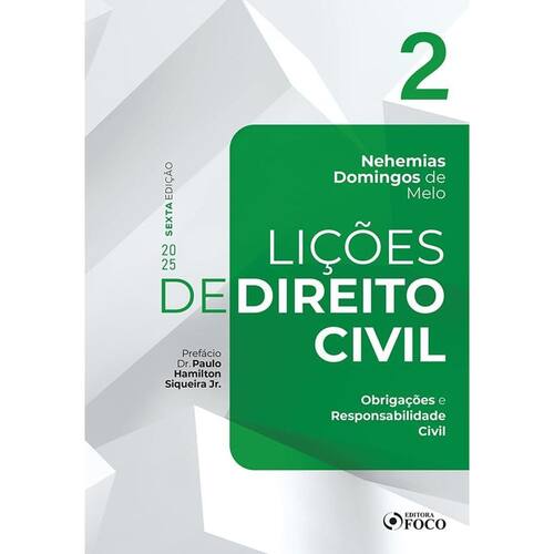 Sobre a obra Lições de Direito Civil - Volume 2 - 6 Ed - 2025 Obrigações e Responsabilidade Civil Esta obra aborda todos os conceitos indispensáveis ao conhecimento básico do direito civil brasileiro. A obra não tem a pretensão de ser um tratado doutrinário, mas como o próprio nome da coleção diz, ser lições de direito civil. Cada volume apresentado estabelece premissas fundamentais para a melhor compreensão da matéria ao analisar acertadamente os institutos que tratam do conteúdo da disciplina. Destacam-se na coleção alguns traços distintivos com relação a outras obras similares disponíveis no mercado, como, por exemplo, a falta de citação de outros autores. Quer dizer, a obra é direta e objetiva e o autor não se preocupou em ficar colacionando notas de doutrina de outros autores para reforçar seus conceitos. Outro exemplo: nas citações de artigos de Lei, especialmente do Código Civil, o leitor encontrará em notas de rodapé o texto do artigo mencionado. Dessa forma, o aluno não necessitará ter ao lado o vade mecum e ficar folheando-o em busca dos artigos mencionados. Quer dizer, seus conceitos são diretos, objetivos e claros, sem repetições. Lições de Direito Civil vai contribuir para a formação de futuros operadores do direito, bem como pode ser útil àqueles que vão prestar o Exame da Ordem dos Advogados do Brasil e aos candidatos que vão prestar concursos para juízes, promotores, defensores e outros cargos destinados a advogados. A coleção completa é composta dos seguintes volumes: Vol. 1 Teoria Geral das pessoas e dos bens Prefácio Dra. Andrea Wild Vol. 2 Obrigações e Responsabilidade Civil Prefácio Dr. Paulo Hamilton Siqueira Jr Vol. 3 Dos Contratos e dos Atos Unilaterais Prefácio Dra. Roberta Densa Vol. 4 Direitos das Coisas Prefácio Dr. Carlos Alberto Garbi Vol. 5 Família e Sucessões Prefácio Dra. Adriana Galvão Moura Abílio Autor Nehemias Domingos de Melo APLICAÇÃO O livro destina-se especialmente aos alunos da graduação em