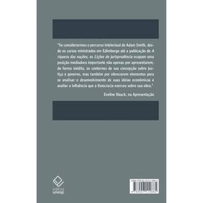 “Se considerarmos o percurso intelectual de Adam Smith, desde os cursos ministrados em Edimburgo até a publicação de A riqueza das nações, as Lições de jurisprudência ocupam uma posição mediadora importante não apenas por apresentarem, de forma inédita, os contornos de sua concepção sobre justiça e governo, mas também por oferecerem elementos para se analisar o desenvolvimento de suas ideias econômicas e avaliar a influência que a Fisiocracia exerceu sobre sua obra.”