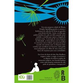 Um retrato poético da infância e da magia escondida nas pequenas coisas É possível guardar as sensações — o cheiro do verão, o sabor das lembranças, a brisa que anuncia um novo dia? Durante o verão de 1928, em Green Town, Illinois, os irmãos Douglas e Tom Spaulding decidem tentar isso. Em garrafas de licor de dente-de-leão , buscam capturar a essência de cada momento, descoberta e emoção vivida nas férias mais marcantes de suas vidas. Entre aventuras pelo desfiladeiro da cidade, histórias de antigos moradores, “máquinas do tempo” e ecos de fantasmas do passado, Douglas descobre o valor das pequenas coisas e o milagre de simplesmente estar vivo. Com lirismo e nostalgia, Ray Bradbury, inspirado em sua própria juventude, transforma a infância em poesia e celebra a magia escondida nos dias comuns — aqueles que, uma vez guardados na memória, se tornam eternos.