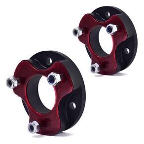 Especificações: Kit lift de 2 polegadas para subir 5 cm de altura na dianteira. Calços dianteiros fabricados em alumínio anodizado com uma pelicula de pu poliuretano . Pintura preta fosco. Não precisa de adaptações.