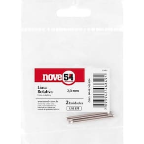 Marca: Nove54Conteúdo da Embalagem:1 Jogo com 2 limas rotativas para microrretíficaDestaques e diferenciais:Oferece conforto e maior segurança ao operador, reduz o esforço sobre o equipamento.Aplicações e dicas de uso:Indicada para gravações, desbastes e acabamentos em metaisCaracterísticas Técnicas:Diâmetro da lima rotativa para microrretífica: 2,0 mm Altura do corte da lima rotativa para microrretífica: 2,00 mm Diâmetro da haste da lima rotativa: 3,1 mm
