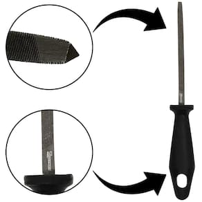 Kit De Limas Toyama conta com uma lima redonda importante aliada na afiação de correntes 3/8”x0.58” - 3/8”x.063” - 404”x.063”, além de uma lima triangular para afiação de serras e outros conjuntos de cortes e uma lima plana para desbastar as bordas das barras, afiar lâminas de roçadeiras, cortadores de grama e outras ferramentas.