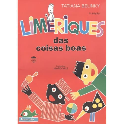 Título Do Livro: Limeriques das coisas boas Autor: Belinky, Tatiana Idioma: Português Editora Do Livro: Somos Sistema de Ensino Ano De Publicação: 2005 Quantidade De Páginas: 20 Altura: 305 mm Largura: 220 mm Peso: 117 g Ilustradores: Vale Mario Data De Publicação: 01-12-2005 Gênero Do Livro: Infantil