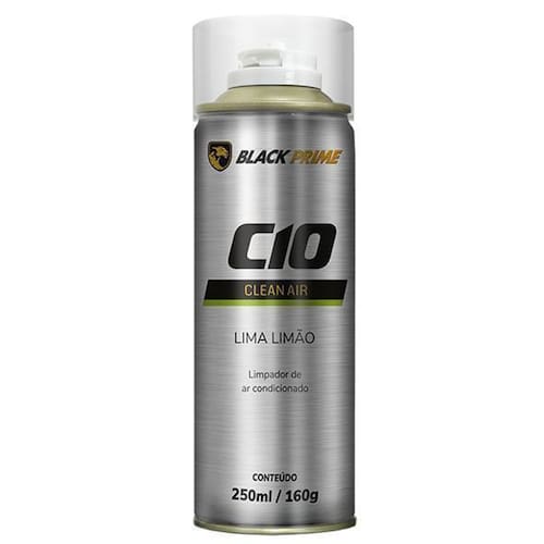 C10 clean air black prime Sobre o produto Limpa o sistema de ar condicionado, verificando os componentes internos do aparelho de climatização do veículo Asseio de bancos, teto, capacete e etc Proporciona um completo saneamento das partes internas do veículo, penetrando em locais de difícil acesso, e não danificando partes elétricas, como: