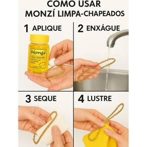 Limpa Chapeados Semijóia Monzi 125Ml Grande Liquido Restaura Limpeza Jóias Correntes Anel Descrição do produto: O limpa chapeados monzi é um produto específico para limpar semijóias e fácil de usar. Atenção para o modo de usar Modo de usar: - passe o limpa chapeados monzi na semijóias banhada folheada ou cobre utilizando algodão. - enxágue em água corrente e enxugue bem com uma flanela mágica. Descarte o algodão. - para objetos maiores, utilize um recipiente de vidro ou plástico com imersão da peça por 10 segundos apenas. - lave bem o recipiente utilizado. - descarte o produto em água corrente. - não risca e nem desgasta a prataria. - limpa chapeados monzi retira a oxidação e a gordura, deixando ainda, uma camada de proteção no objeto. Marca: Não Informado