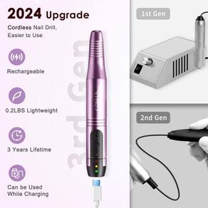 Atualize o kit de furadeira sem fio, ultrardurável e profissional Desfrute de um conjunto de furadeiras de unhas com qualidade de salão em casa! Você está procurando uma furadeira de unhas portátil sem fio? Você quer tornar sua própria manicure doméstica mais fácil, profissional e conveniente? então estamos aqui. Esta furadeira de unhas foi projetada com bateria recarregável para ser usada sem fio a qualquer hora e em qualquer lugar, o que torna a manicure mais fácil e conveniente . É mais confortável de segurar na mão com seu design em forma de caneta. Isso é muito fácil de usar e mais fácil para iniciantes praticarem e dominarem. Pesa apenas 0,2 kg, super leve! Coloque-o em sua bolsa de cosméticos e leve-o para qualquer lugar, faça sua própria manicure onde quiser. Tamanho pequeno, mas tem grandes funções. Com velocidade ajustável e direção inversa para frente, esta furadeira para unhas é equipada com um motor potente, pode atender às suas diferentes necessidades, seja para unhas de acrílico, unhas de gel, calos ou cutículas, e é fácil de fazer manicure para a mão esquerda ou direita sozinha . Projetado com mecanismo de proteção contra sobrecarga, o motor não receberá aquecimento e aumentará sua vida útil. Se pressionar excessivamente, ocorrerá sobrecarga, aguarde 20 segundos, ele será desligado automaticamente e será uma operação normal. Esta função não só o protegerá de ferimentos, mas também protegerá esta furadeira de unhas de esquentar. A vida útil será de mais de 3 anos e é mais segura de usar. Com a ajuda da atualização da estrutura da mola, ela é silenciosa o suficiente e tem menos vibração para tornar sua manicure mais agradável e fácil. Incluindo 6 brocas de metal e 5 brocas de cerâmica e lã. Esta furadeira para unhas pode atender às suas diferentes necessidades. As brocas de metal são mais adequadas para a prática de iniciantes e as brocas de cerâmica são mais profissionais e seguras para fazer unhas com qualidade de salão. Os kits de unhas All in One são a escolha ideal para seus amigos amantes de unhas. - Multifuncional para mandicure e pedicure: com velocidades ajustáveis e opções de direção para frente/para trás, esta furadeira de unhas vem com várias brocas profissionais, você pode personalizar suas várias rotinas de manicure e pedicure ao seu gosto - Sem fio e fácil de usar: diga adeus aos cabos bagunçados e aos equipamentos pesados! Nossa furadeira de unhas sem fio é superleve, pesando apenas 0,2 kg, facilitando o uso e o transporte aonde quer que você vá. Seu design em forma de caneta também a torna confortável de segurar e usar, muito amigável para iniciantes - silenciosa, com baixo calor e 3 anos mais durável: esta furadeira de pregos foi construída para durar, com um motor atualizado e um mecanismo de proteção contra sobrecarga que prolonga sua vida útil. Além disso, sua estrutura de mola o torna silencioso e com baixa vibração para uma experiência mais agradável - 6 horas de duração da bateria e pode ser usada durante o carregamento: com uma bateria de carregamento rápido, esta furadeira de pregos pode ser totalmente carregada em apenas 1 hora e usada por até 6 horas. E se precisar de mais tempo, você pode até mesmo usá-lo durante o carregamento — Kit profissional de furadeira para unhas, opção de presente ideal: se você tem amigos ou amantes que gostam de arte de unhas, este kit de furadeira elétrica sem fio é uma excelente opção de presente. Possui 6 brocas de pregos diferentes e muitas faixas de lixar, atendendo a diversas necessidades e preferências