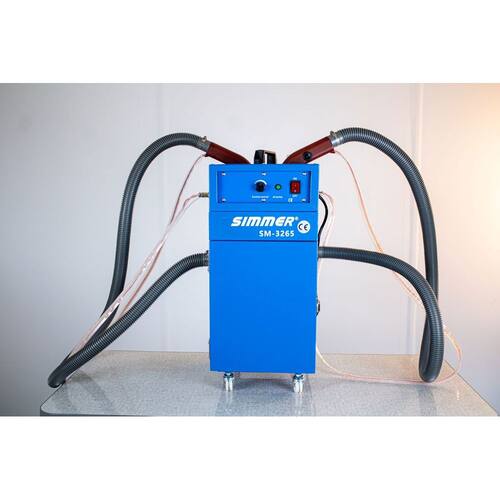 Máquina para remoção de fios em peças têxteis com 2 cabeças de limpeza automática, 2 motores de sucção servo individuais sem carvão, sistema automático, rodinhas para mobilidade.Funções