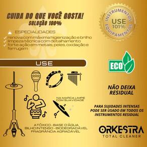 Limpa seco percussão total cleaner percussion 120ml orkestra -descrição do produto: Formulado para sujidades intensas. Use em pratos, peles, ferragens, na bateria inteira o primeiro limpador a seco ecológico para instrumentos musicais e equipamentos. Solução 100%. Não mancha e não desbota. Único 6x1 do mercado - limpa, desengordura, age em oxidações, ferrugens e odores, higieniza e dá brilho em operação instantânea e simultânea. Seguro também em verniz nitrocelulose e outras pinturas. Conceito: aplique a névoa e limpe até secar. Aplique e movimente até que a sujidade vá soltando com pincel, esponja ou escova macios facilitando a renovação. Use de delicadeza sobre as marcas. Produto a base d'água água é melhor limpador do planeta . Pode ser aplicado em quaisquer materiais. Produto seguro. Altíssimo rendimento. Altíssimo rendimento. Modo de usar Passo 1: pulverize a névoa sobre a superfície de todo o instrumento ou equipamento uniformemente sem escorrer. uso de pincel macio ou esponja em detalhes, cantos e rebaixos aprimora a limpeza . Passo 2: use dois panos: o primeiro pano limpando e removendo a sujidade; o segundo pano seco para acabamento, higienizando e gerando acabamento com brilho intenso. Aprendendo Na pele da bateria, aplique e aguarde um tempo até que umedeça a sujidade. Use pincel e esponja. Reaplique se necessário. Em pratos e suportes metálicos c7romados ou não, aplique a névoa até que superfície fique umida. Use pincel ou esponja para movimentar sujidades, após pano. Pode-se aplicar sobre as marcas, contudo seja sempre suave e cuidadoso. Distinga manchas de sujidades. Pode ser no corpo do instrumento, em escalas, cordas, captadores, cromados, prata etc. Limpe cordas sem necessidade em removê-las. Por debaixo delas, use pano com palheta sem cantos para não riscar. Recupera o grip e mantém limpas por mais tempo. A névoa já realiza todas as funcionalidades Pode ser aplicado em verniz nitrocelulose, e internamente em instrumentos de sopro. Instrumentos encerados: aplique e limpe com rapidez Em mecanismos: se limpos integralmente, lubrifique novamente. Oxidação e ferrugens se removem com orkestra; em ferrugem talvez seja necessário palha de aço fina. Equipamentos diversos: em mesas de som, equipamentos, telas lcd, luzes e refletores, suportes, móveis etc. Sobre nossa loja: Somos a e musical loja de instrumentos e acessórios musicais. Contamos com uma vasta gama de produtos novos e seminovos revisados, uma equipe de vendas especializada que trabalha desde 2009 no mercado da música. Estamos sempre à disposição para atender suas necessidades e exigências como músico Lojaemusical Jacareí sp