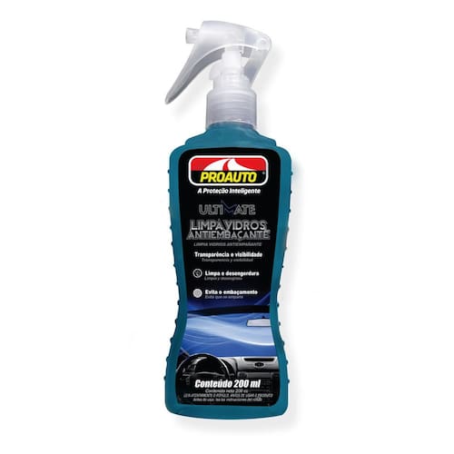 Limpa Vidros Antiembaçante Proauto limpa e mantém vidros, espelhos e vitrines com duradoura ação de limpeza. Eliminando assim o embaçamento provocado por baixa temperatura e umidade do ar.
