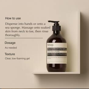 Aesop A Rose by Any Other Name Limpador corporal | Esfoliante revigorante para pele lisa e hidratada | Sem parabenos, crueldade e vegano | 500 ml - Um gel aromático formulado para limpar suavemente e completamente, aprimorado com o melhor óleo de pétala de rosa e outros extratos botânicos que suavizam a pele. - Sensação de pele: aquecida, limpa, fresca. - Aroma: floral, picante, quente. - Ingredientes principais: pétala de rosa, cardamomo, pimenta preta - Como usar: coloque nas mãos ou em uma esponja do mar. Massageie na pele encharcada do pescoço aos dedos e depois enxágue completamente. - Aesop: Produtos de cuidados com as mãos e o corpo formulados com ingredientes da mais alta qualidade. Vegano e livre de crueldade.