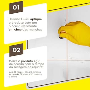 - Em resíduos leves, deixe agir de 10 a 15 minutos. Em resíduos mais espessos, deixe, no máximo, 1 hora.