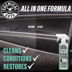 Chemical Guys SPI_103_16 Limpador e condicionador de couro pulverizável em um para interiores de carros, roupas e mais (funciona em couro natural, sintético, plissado, couro sintético e mais), 473 ml - Não apenas para cuidados automáticos: o limpador e condicionador de couro pulverizável funciona em todos os itens de couro - assentos, interiores, jaquetas, sapatos, tênis, botas, bolsas, móveis e muito mais; todo mundo tem algo de couro em sua casa, trazê-lo de volta à vida. Tipo de ajuste: ajuste universal - Fórmula seca ao toque: basta borrifar couro pulverizável e condicionador diretamente na peça de couro ou em uma toalha de limpeza e, em seguida, seque com uma toalha de microfibra fresca; a fórmula multifuncional limpa e remove sujeira, poeira e óleos corporais, não deixando resíduos - Restaure com vitamina E e alo: o limpador e condicionador de couro pulverizável é projetado para manter o couro natural e revestido; contém vitamina E e Aloe para restaurar a sensação macia de volta ao couro; uma diferença que você pode ver, um cheiro que fará você sorrir - PH equilibrado – couro pulverizável e condicionador tem pH equilibrado para limpeza rápida e eficiente e preserva a força, durabilidade e aparência do couro; penetra nos poros do couro para levantar e suspender a sujeira e os óleos - Mantenha o couro com aparência e cheiro de novo: Reponha os óleos e nutrientes naturais que o couro precisa para permanecer macio e flexível com o limpador e condicionador de couro pulverizável; limpa e nutre o couro em um passo pulverizável e tem um cheiro ótimo também! - Adequado para iniciantes e profissionais – os produtos Chemical Guys são para iniciantes e especialistas; nível profissional para obter os melhores resultados e também são simples o suficiente para até mesmo um iniciante alcançar resultados imediatos. - A marca em cuidados automotivos: iniciantes e profissionais escolhem a Chemical Guys, para os melhores produtos de cuidados com carros e vasto conhecimento detalhado, a Chemical Guys é mais do que uma marca, é um estilo de vida com seguidores em todo o mundo