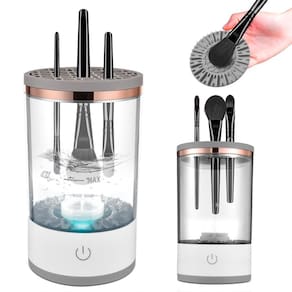 Limpador Elétrico Para Pincéis de Maquiagem Limpeza Automático Diga adeus à tediosa tarefa de limpar seus pincéis de maquiagem manualmente Ganhe tempo lavando diversos pincéis juntos, sem precisar segurá-los. Limpeza rápida, prática e sem esforço.