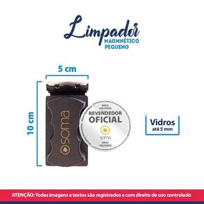 Especificações: Marca: Soma Modelo: Magbrush Revendedor oficial: Mega Aquários Produto: Limpador magnético Para vidros de 3 a 6mm de espessura Composição: plástico, tecido sintético e imã magnético Tamanho: 4,3 x 4,3 x 3,7cm Peso: 38g