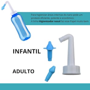 Descrição do anúncio: Conteúdo da embalagem: 1 higienizador nasal com recipiente de 300 ml 1 bico nasal tamanho adulto 1 bico nasal tamanho infantil Características: Alívio de sintomas como nariz entupido, dores de cabeça, espirros e coriza Facilita a remoção de impurezas e bactérias Hidratante para dias de tempo seco Diminui crises de asma, bronquite e outras alergias Previne amidalite e faringite Combate à otite Reduz dores de cabeça e mal-estar causados pela obstrução nasal Procedimento seguro e recomendado por médicos Especificações: Material: plástico pp Capacidade do recipiente: 300 ml Peso: aprox. 115g Livre de bpa: sim Principais perguntas sobre o produto e respostas: 1 qual a capacidade do recipiente A capacidade do recipiente é de 300 ml. 2 pode ser por crianças e adultos Sim, o higienizador nasal é adequado e eficiente tanto para crianças quanto para adultos. 3 qual é o material do produto O produto é feito de plástico pp e é livre de bpa. 4 como é feito o procedimento de lavagem O procedimento é indicado com soro fisiológico ou água morna com sal, escolhendo a ponteira adequada, inclinando a cabeça e apertando o botão para iniciar a lavagem. 5 o produto vem com Sim, o produto possui do vendedor de 30 dias. 6 é necessário virar a cabeça para o lado durante a lavagem Não, não é necessário virar a cabeça para o lado, evitando possíveis dores no ouvido. Marca: Não Informado Ean: 7904263823228