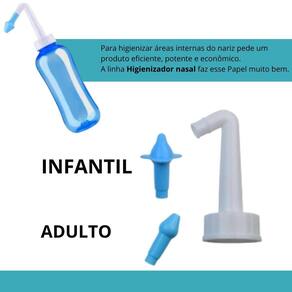 Descrição do anúncio: Conteúdo da embalagem: 1 higienizador nasal com recipiente de 300 ml 1 bico nasal tamanho adulto 1 bico nasal tamanho infantil Características: Alívio de sintomas como nariz entupido, dores de cabeça, espirros e coriza Facilita a remoção de impurezas e bactérias Hidratante para dias de tempo seco Diminui crises de asma, bronquite e outras alergias Previne amidalite e faringite Combate à otite Reduz dores de cabeça e mal-estar causados pela obstrução nasal Procedimento seguro e recomendado por médicos Especificações: Material: plástico pp Capacidade do recipiente: 300 ml Peso: aprox. 115g Livre de bpa: sim Principais perguntas sobre o produto e respostas: 1 qual a capacidade do recipiente A capacidade do recipiente é de 300 ml. 2 pode ser por crianças e adultos Sim, o higienizador nasal é adequado e eficiente tanto para crianças quanto para adultos. 3 qual é o material do produto O produto é feito de plástico pp e é livre de bpa. 4 como é feito o procedimento de lavagem O procedimento é indicado com soro fisiológico ou água morna com sal, escolhendo a ponteira adequada, inclinando a cabeça e apertando o botão para iniciar a lavagem. 5 o produto vem com Sim, o produto possui do vendedor de 30 dias. 6 é necessário virar a cabeça para o lado durante a lavagem Não, não é necessário virar a cabeça para o lado, evitando possíveis dores no ouvido. Marca: Não Informado Ean: 7904263822627