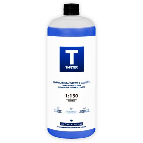 Limpeza muito pesada: Diluir em até 1:20Limpeza pesada: Diluir em até 1:50Limpeza de média Intensidade: Diluir em até 1:100Limpeza leve: Diluir em até 1:150Em máquinas de lavar roupas, usar 50ml a 100ml dependendo da intensidade da sujeira. Modo de Usar Diluia o produto de acordo com o grau de sujeira;Aplicar TAPETEX no tapete ou carpete;Deixe o produto agir por alguns minutos:Realize esfregação para remoção dos resíduos;Remova todo o resíduo com um generoso enxague.