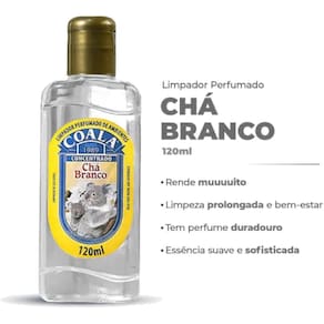 Limpador Perfumado De Ambientes 120ml Coala Chá Branco Fragrancia: Chá Branco Limpador perfumado de ambientes Coala Chá Branco 120ml. Produto concentrado, rende mais, perfuma e limpa com sensação prolongada de bem-estar. Deixe sua casa com aroma de limpeza e frescor com o Limpador Perfumado Coala Chá Branco 120ml. Com fórmula concentrada, ele oferece alta performance na limpeza leve de ambientes enquanto libera um perfume agradável e duradouro. Ideal para quem busca praticidade, economia e aquele cheirinho de casa limpa todos os dias. Basta algumas gotas diluídas em água para transformar a energia do ambiente com uma fragrância suave e sofisticada. Benefícios do Limpador Perfumado Coala: Fórmula concentrada: alto rendimento e economia Fragrância de Chá Branco: leve, fresca e duradoura Prolonga a sensação de bem-estar e limpeza Pode ser em todos os ambientes Ideal para o dia a dia Fácil de usar: só diluir e aplicar com pano úmido Modo de Usar: Dilua 8 gotas do produto em 1 litro de água limpa. Umedeça um pano na solução. Aplique sobre a superfície desejada. Deixe secar naturalmente. Indicado para pisos frios, bancadas, superfícies laváveis e aromatização de áreas internas. Informações Técnicas: Produto: Limpador Perfumado de Ambientes Fragrância: Chá Branco Volume: 120 ml Tipo: Concentrado Marca: Coala Essências Aromáticas Rendimento: Várias aplicações com diluição Categoria: Aromatizantes e limpeza leve Cuidados e Armazenamento: Mantenha fora do alcance de crianças e pets Evite exposição ao sol ou calor excessivo Armazene em local seco e ventilado Não ingerir ou aplicar sobre a pele O que significa concentrado Significa que deve ser diluído antes do uso. Isso garante mais rendimento e economia. Pode aplicar direto Não. Para melhores resultados e segurança das superfícies, utilize sempre diluído. Posso usar em qualquer superfície Recomenda-se fazer um teste em uma pequena área antes de aplicar por completo. Pode ser todos os dias Sim. A fórmula é leve e indicada para uso frequente. Marca: Não Informado Ean: 7890035887836