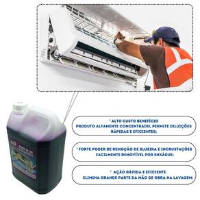 Produto foi especialmente elaborado para a remoção de sujeiras e incrustações em diversos equipamentos como ar condicionados, pisos rústicos, pedras rusticas, limpa aletas, condensadores, evaporadores, colmeias etc