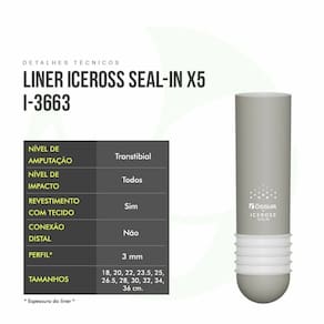 O Iceross Seal-In X5 transtibial incorpora uma série de cinco anéis integrados que se ajustam à forma do coto e à parede interna do encaixe, proporcionando um lacre a vácuo.