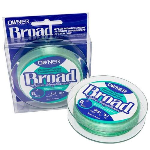 As linhas Owner Broad hoje é a linha monofilamento mais conceituada no mercado de pesca brasileiro, sendo usual para todo tipo de pescaria devido a sua resistência e durabilidade. Feito em Nylon-6 ou Policaproamida, com baixa memória, não abrasiva e com tratamento em Fluorine onde permite a “camuflagem” da linha na água, tornando-a praticamente invisível aos peixes, porém visíveis aos olhos humanos quando fora d’água.