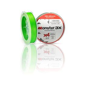 - Marca: Monster 3X - Modelo: Multifilamento X4 M3X - Cor: Verde - Fios: 4 Fios - Carretel: 200 metros - Resistência à abrasão e tração - Elasticidade: Baixa