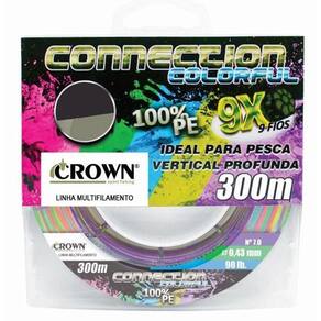 Linha Multifilamento Connection 9x Colorfull 300mts - CrownLançamento da Saint Plus, a linha multifilamento Connection 9X Colorful é confeccionada em 100% PE em 9 fios trançados o que lhe proporciona maior maciez e alta resistência a tensão e ao mesmo tempo muito sensível a fisgadas, linha totalmente impermeável e elasticidade próxima de zero.A linha Connection 9X não causa danos aos passadores das varas por não ser abrasiva, ideal para pesca Vertical profunda, pois possui identificação de profundidade por cor. As cores são alternadas de 10 em 10 metros.EspecificaçõesFabricante: CrownModelo: Connection 9x ColorfullComposição 100% polietilenoSistema de caixa que permite tencionar a linhaLinha com 9 fios trançadosCarretel com 300 metrosCor Colorful : Amarelo, Azul, Laranja, Verde e Roxo