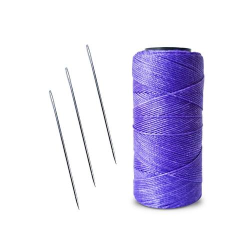Linha para artesanato, couros, sapato n04 + 3 agulhas de aço Cor: uva GENERAL COUROS. 3 agulhas manual com ponta feito em aço niquelado para melhorar a qualidade. Marca: bondnyl Peso:80g Modelo encerado Fio grossura n4 aproximadamente 1,2mm de espessura Metragem: aproximadamente 160mts