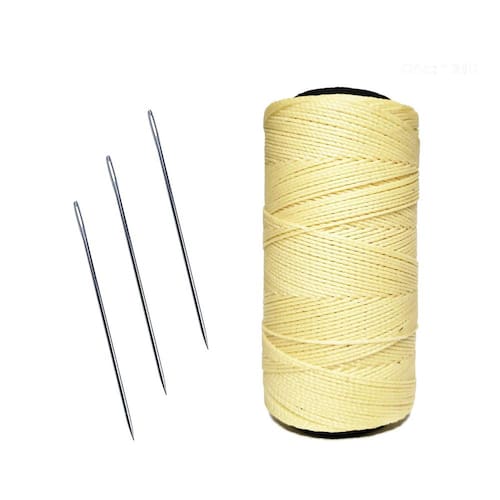 Linha para artesanato, couros, sapato n04 + 3 agulhas de aço Cor: bege claro GENERAL COUROS. 3 agulhas manual com ponta feito em aço niquelado para melhorar a qualidade. Marca: bondnyl Peso:80g Modelo encerado Fio grossura n4 aproximadamente 1,2mm de espessura Metragem: aproximadamente 160mts