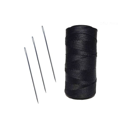 Linha para artesanato, couros, sapato n04 + 3 agulhas de aço Cor: preto GENERAL COUROS. 3 agulhas manual com ponta feito em aço niquelado para melhorar a qualidade. Marca: bondnyl Peso:80g Modelo encerado Fio grossura n4 aproximadamente 1,2mm de espessura Metragem: aproximadamente 160mts