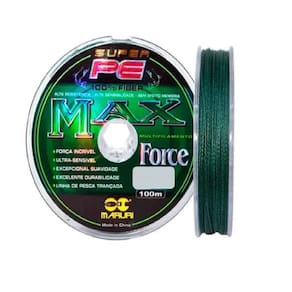 Ançadas 100% PE, deixando assim com um acabamento mais arredondadoImpermeabilizada baixa absorção de água , desliza facilmente pelos passadores proporcionando arremessos mais longos e precisos.Tecnologia avançada de revestimento, resistente à abrasão, mais forte e resistente à água salgada, resultando em maior durabilidade.Características Gerais:- Linha de multifilamento trançada em 4 fios de 100% polietileno;- Alta sensibilidade: permite ao pescador uma reação mais rápida às fisgadas do peixe;- Elasticidade zero: reduz o risco com as garatéias por não provocar chicoteada;- Eficiência garantida: uso amador e ;- Mais força, maciez e resistência que as linhas tradicionais;- Revestida com repelente à água: baixa absorção de água;- Não danifica os passadores;- Desenvolvida na cor verde escuro;- Excelente resistência;- Fácil manuseio;- Sem efeito memória;Especificações Técnicas:- Cor: Verde- Marca: Maruri Fishing- Modelo: Max Force 4X- Espessura: 0.24mm- Resistência: 26Lb 11.8kg - Comprimento: 100m Marca: Não Informado