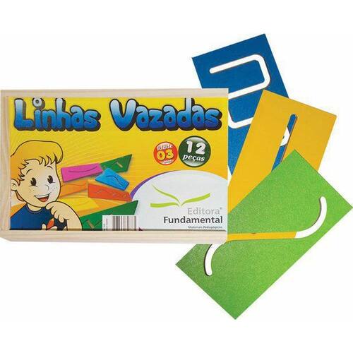 Linhas Vazadas Desenvolve a habilidade do traçado sendo adequado para crianças que iniciam o processo de alfabetização. Ajuda desenvolver a coordenação motora fina necessária à escrita. Conteúdo: 12 placas em MDF tamanho 10 x 22 x 0,3, pintadas com tinta atóxica com formas diversas para o aperfeiçoamento do traçado. Faixa etária: a partir de 3 anos.