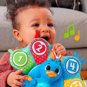 Fisher Price Linkimals Pavão Penas Coloridas - Mattel O brinquedo Linkimals™ do Pavão™ Contagem & Cores da Fisher-Price® é um amigo plumado interativo que introduz números, contagem, cores, formas e gentileza ao seu bebê por meio de brincadeiras interativas. Os bebês podem apertar as 5 penas coloridas da cauda ou girar a roleta para reproduzir canções divertidas, sons, frases e luzes multicoloridas. E quando este orgulhoso pavão se junta aos outros brinquedos Linkimals