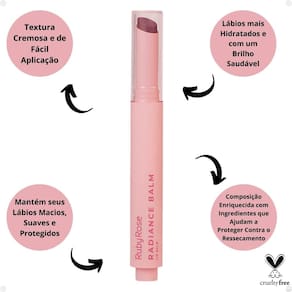 O Lip Balm Ruby Rose Radiance Balm RB40 HB-L6501-4 é a escolha ideal para manter os lábios hidratados e com um brilho radiante ao longo do dia. Com uma fórmula rica e suave, esse bálsamo labial proporciona hidratação profunda, deixando seus lábios macios e nutridos.