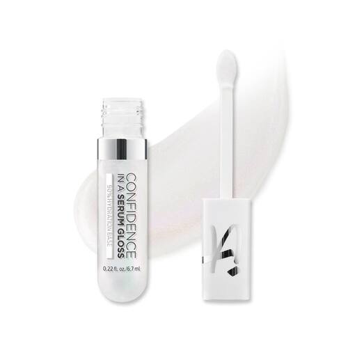 Brilho labial Confidence in a Serum da IT Cosmetics — Suavizante e condicionador — 8 horas de hidratação com ácido hialurônico, ceramida e vitamina E — Alto brilho e acabamento transparente, autoconfiante (brilho transparente)